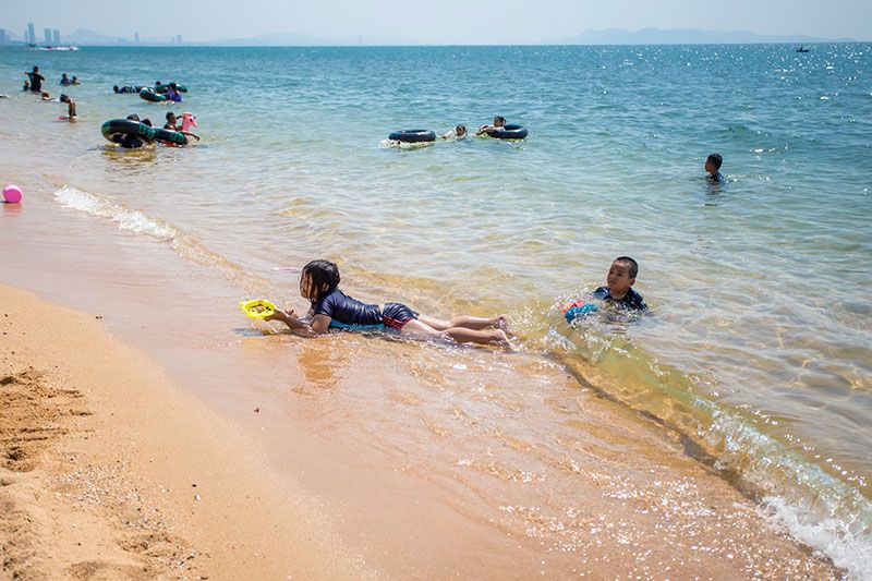 15 พ.ย.63 ผู้สื่อข่าวรายงานว่าที่บริเวณชายหาดจอมเทียน อ.บางละมุง จ.ชลบุรี มีนักท่องเที่ยวทั้งชาวไทยและชาวต่างชาติต่างพาครอบครัว ลูกหลาน เดินทางมาพักผ่อนลงเล่นน้ำทะเลบริเวณชายหาดจอมเทียน เนื่องจากสภาพน้ำทะเลชายหาดจอมเทียนมีความใสสะอาด จนสามารถมองเห็นเปลือกหอย พื้นทรายที่อยู่ในน้ำอย่างเห็นได้ชัด บวกกับเป็นช่วงวันหยุดทำให้นักท่องเที่ยวพื้นที่ใกล้เคียง และต่างจังหวัด ต่างพาครอบครัวเดินทางเข้ามาเป็นจำนวนมาก ส่งผลให้การจราจรถนนชายหาดจอมเทียนเต็มไปด้วยรถยนต์ของนักท่องเที่ยว ซึ่งนักท่องเที่ยวต่างก็ถ่ายรูปลงโซเชียลเพื่ออวดเพื่อนถึงความใสของน้ำทะเล