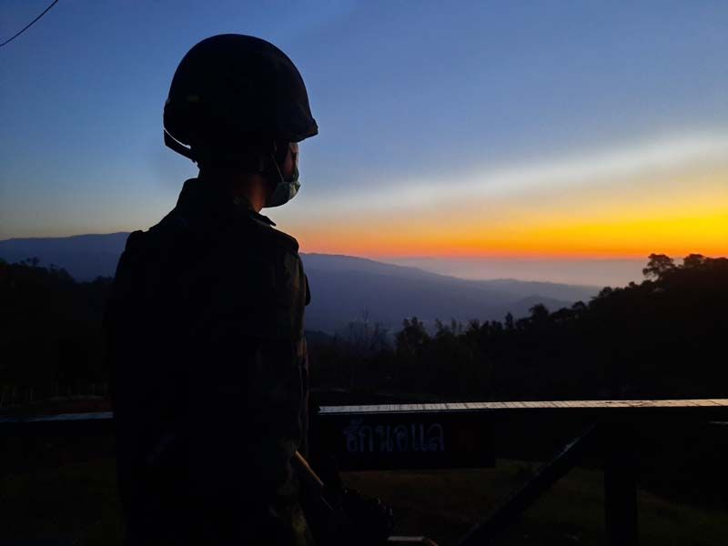 ภาพการเข้าเวรเพื่อเฝ้าตรวจพื้นที่ชายแดนของกองร้อยทหารม้าที่ 4 หน่วยเฉพาะกิจกรมทหารม้าที่ 5 กองกำลังผาเมือง บนฐานปฏิบัติการดอยสันจุ๊ อำเภอฝาง จังหวัดเชียงใหม่ ซึ่งตั้งอยู่ตรงข้ามกับฐานปฏิบัติการของทหารเมียนมา ว้าและไทยใหญ่ แสดงให้เห็นถึงความรับผิดชอบของกำลังพลในการปกป้องอธิปไตยของชาติ ผ่านการเป็นทหาร อาชีพที่ต้องใช้ความอดทน เสียสละ และรับผิดชอบถึงแม้ว่าอากาศจะหนาวเย็นตอนกลางคืนหรืออากาศร้อนในตอนกลางวัน ซึ่งบางวันอาจมีฝนตกพวกเขาเหล่านี้ก็ยังคงปฏิบัติหน้าที่เป็นยามชายแดนเช่นนี้ ตลอด 24 ชั่วโมง