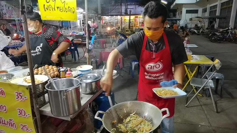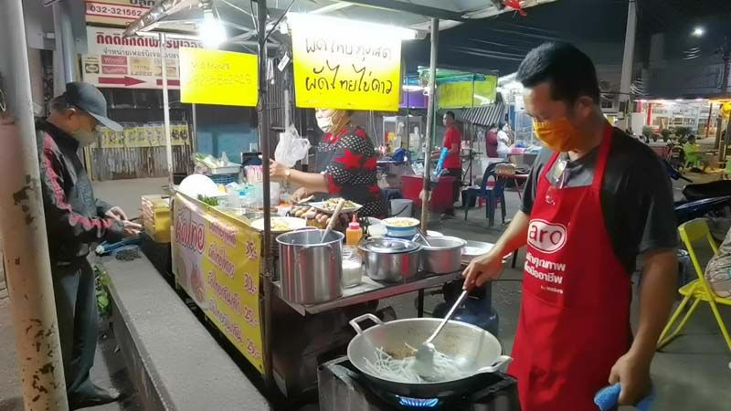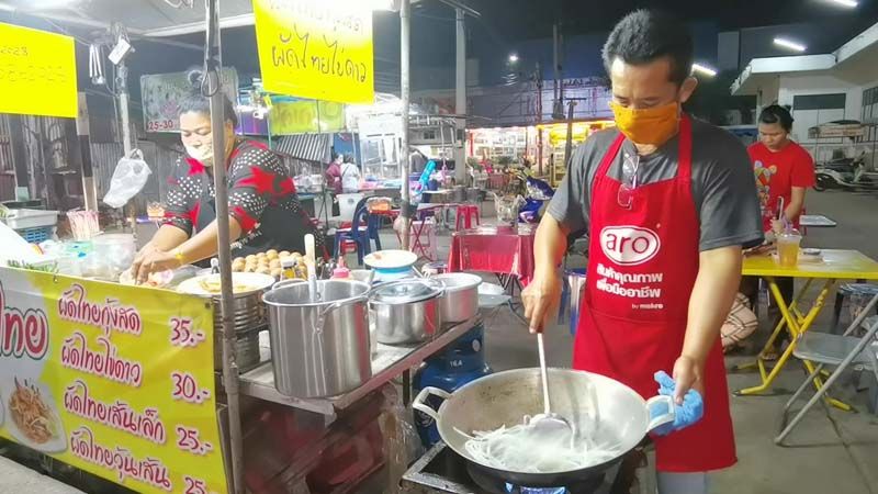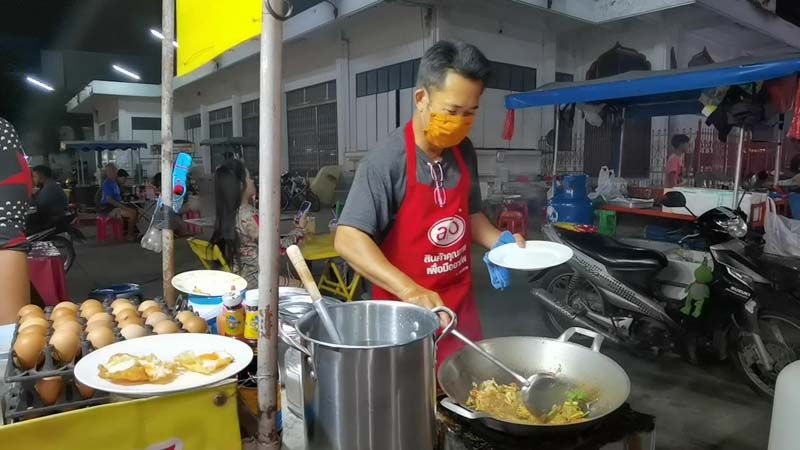 วันที่ 16 พฤศจิกายน 2563 พาไปกันที่ตลาดยามเย็นที่หน้าวัดโรงช้าง ต.หน้าเมือง อ.เมือง จ.ราชบุรี ซึ่งเป็นจุดศูนย์รวมของอาหารอร่อยของชาวเมืองราชบุรี ที่จะมีเมนูให้เลือกหลากหลาย อาทิ อาหารตามสั่ง ข้าวต้ม หอยทอด และอีก 1 เมนูเด็ดที่กำลังได้รับความนิยมของบรรดาวัยรุ่น คือ ผัดไทยไข่ดาว จากเมนูง่ายๆ แต่สามารถทำกำไรได้งามจนพลิกชีวิต 2 สามีภรรยา จากอดีตเชฟร้านอาหารชื่อดังเมืองราชบุรี ที่ทำกันมากว่า 15 ปี แต่กลับมาเจอพิษโควิด-19 ที่ร้านอาหารต้องปิดตัวจากสถานการณ์นานกว่า 4 เดือน ทำให้ต้องตกงาน จึงผันตัวมาเปิดร้านเป็นของตัวเอง ด้วยการขายผัดไทยโบราณ กับการเปิดเมนูเด็ด อาทิ ผัดไทยไข่ดาว, ผัดไทยไข่เจียว หรือ จะเป็นเมนูผัดไทยไข่เยี่ยวม้า ด้วยราคา เพียงจานละ 30 – 40 บาท ขณะที่ผัดไทยโบราณจานละ 25 บาท แถมอัดแน่นไปด้วยเครื่องปรุงที่อัดแน่นเต็มจาน ให้กันแบบกินจนจุก ไม่จุกไม่คิดเงิน