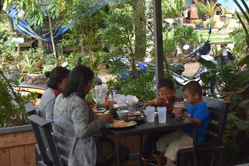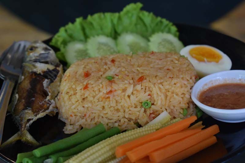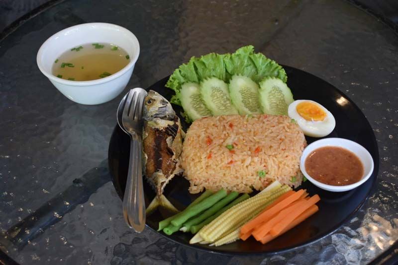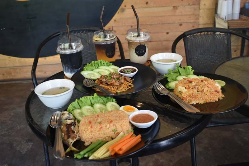 นอกจากเมนูเครื่องดื่มแล้ว เมนูอาหารแนะนำสากลผสมผสานรสชาติปักษ์ใต้ อาทิ สปาเก็ตตี้เนื้อย่างน้ำจิ้มแจ่ว สปาเก็ตตี้น้ำพริกนรก และข้าวผัดน้ำพริกลงรู วัตถุดิบบอกได้เลยหากเป็นวัตถุดิบจากทะเล กุ้ง ปู ปลา มาจากชาวประมงพื้นบ้านในหมู่บ้านที่มาส่งขายกันวันต่อวัน ราคาที่ย่อมเยาเด็ก ๆ นักเรียน วัยรุ่น คนทำงานเข้าถึงได้ง่าย อีกทั้งไม่พลาดที่จะให้บริการจากโครงการคนละครึ่ง และบริการเจลล้างมือป้องกันการแพร่ระบาดของเชื้อไวรัสโควิด 19 ด้วย