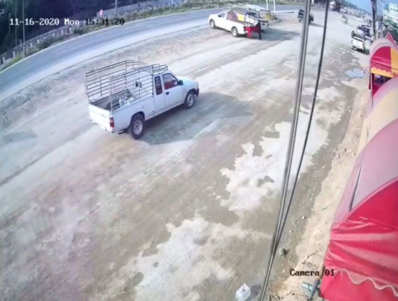 ซึ่งกล้องวงจรปิดบันทึกภาพกระบะคันดังกล่าวไว้ได้อย่างชัดเจน ขณะที่ขับหนีไป เป็นรถยนต์กระบะสีขาว ลักษณะมีคอกเหล็กสูงด้านท้ายกระบะ ทิ้งห่างประมาณ 200 เมตร มีนายภัทรชัย พยายามวิ่งไล่ติดตามเพื่อจะเก็บค่านมเปรี้ยว แต่ก็ไม่ทัน ทั้งที่ขอความช่วยเหลือจากพลเมืองดีซ้อนท้ายจยย.ติดตามไปก็ตาม