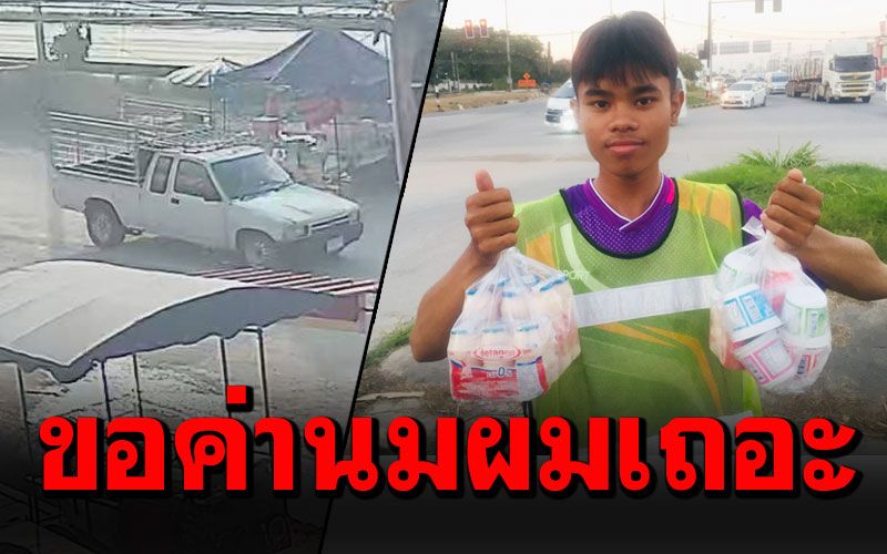ขอค่านมให้น้องเถอะคับ นักเรียน ม.5 ขายนมเปรี้ยวถูกกระบะเบี้ยวค่านม 100 บาท