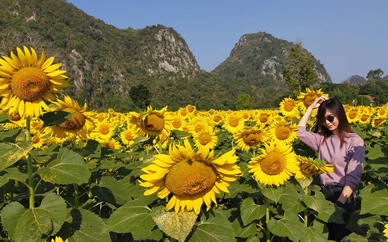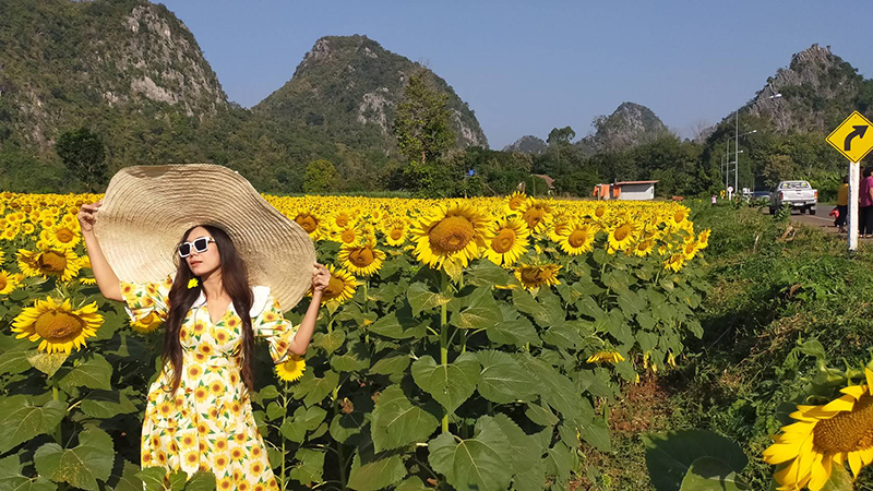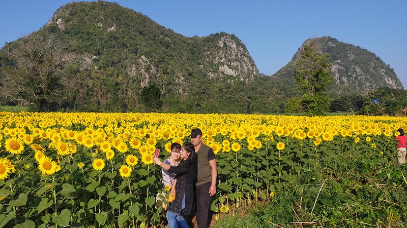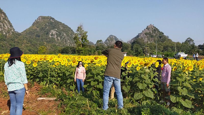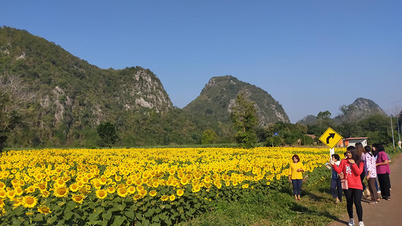โดยทุ่งดอกทานตะวันที่กำลังเบ่งบานสะพรั่งสวยงามในช่วงฤดูหนาว บานอวดโฉมให้นักท่องเที่ยวได้ชื่นชม บรรดานักท่องเที่ยวได้เดินทางมาถ่ายรูปเซลฟี่เป็นที่ระลึก โดยมากันทั้งครอบครัว หรือคู่หนุ่มสาว หลายร้อยต่อวัน ทำให้ขณะนี้บรรยากาศเป็นไปด้วยความคึกคักตลอดทั้งวัน