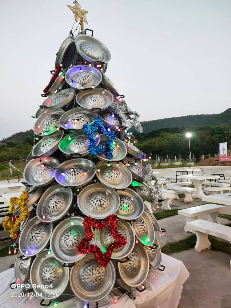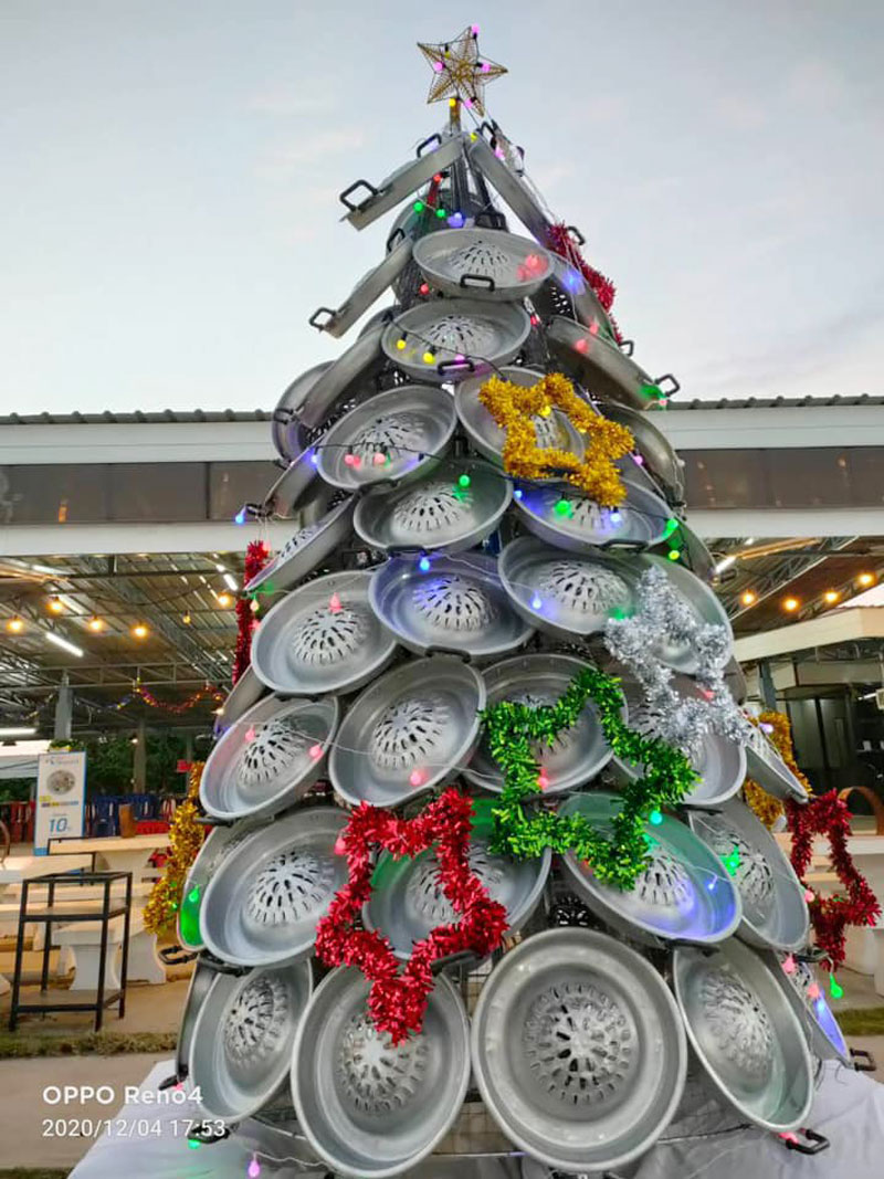 เช่นเดียวกับร้านหมูกระทะแห่งหนึ่ง ที่จังหวัดนครสวรรค์ ที่ไอเดียบรรเจิดสุดๆ เอาใจสายปิ้งย่างด้วยการใช้กระทะประดับประดาเป็นต้นคริสต์มาส ตั้งกลางเด่นเป็นสง่าอยู่กลางร้าน