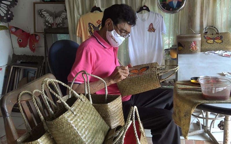 ในช่วงโควิด-19 ระลอกใหม่ ซึ่งหลายๆคนมีผลกระทบ เนื่องจากไม่สามารถไปออกบูธได้ จึงขาดรายได้ ช่วงหลังมีลูกค้ามาติดต่อจะรับไปขายต่อ โดยซื้อกระเป๋ากระจูดมาให้เพ้นท์สีอย่างเดียวเพื่อให้แม่บ้านไปขายต่อในชุมชน เพื่อจะได้แบ่งรายได้กัน เนื่องจากมีผลกระทบโควิด-19 ระลอกใหม่เช่นเดียวกัน รวมทั้งรับเพ้นท์รูปผีเสื้อที่เสื้อโดยลูกค้าจะส่งเสื้อมาให้เพ้นท์ผีเสื้อที่ชอบบนเสื้อตัวโปรด ขณะนี้มีลูกค้าหลายจังหวัดที่ส่งเสื้อมาให้เพ้นท์ผีเสื้อที่ชอบบนเสื้อ ในราคาที่ลูกค้าทุกคนพึงพอใจ เนื่องจากผีเสื้อแต่ละตัวเป็นนวัตกรรมแฮนด์เมดทุกตัว