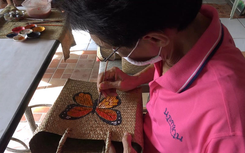 นอกจากการเพ้นท์กระเป๋ากระจูดขายสร้างรายได้ จะต้องลงมือเพ้นท์เอง ซึ่งผีเสื้อแต่ละตัวเป็นนวัตกรรมแฮนด์เมดทุกตัว โดยแบ่งเวลาในการทำงานในช่วงเช้าก็จะเพ้นท์ผีเสื้อให้กับลูกค้า ที่นำกระเป๋ากระจูดมาจ้างให้เพ้นท์รูปผีเสื้ออย่างเดียว รวมทั้งเพ้นท์เสื้อรูปผีเสื้อให้กับลูกค้าต่างจังหวัดที่ส่งเสื้อมาให้เพ้นท์ ส่วนในช่วงบ่ายก็จะเพ้นท์กระเป๋ากระจูด ส่งขายตามออเดอร์ที่ลูกค้าสั่งเข้าทางไลน์