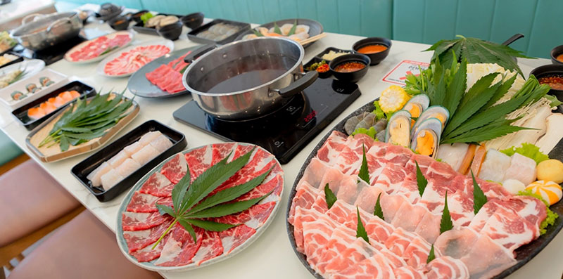 น.ส.สุภัทรา ดวงงา อายุ 34 ปี เจ้าของร้านและแฟรนไชส์ชาบูอินดี้ เปิดเผยถึงแนวคิดการนำกัญชามาปรุงในอาหารว่า หลังจากกัญชา ถูกปลดล็อคออกจากบัญชีสารเสพติด เป็นที่มาของการที่ร้านชาบูอินดี้ นำกัญชามาทดลองปรุงอาหารเป็นเจ้าแรกของจังหวัดพิษณุโลก เริ่มจากปรุงเป็นน้ำซุปอารมณ์ดี มีทั้งน้ำซุปแบบน้ำดำและน้ำซุปปกติ เพื่อให้ลูกค้าได้ทดลองชิมพร้อมกับเมนูกัญชาชุบแป้งทอดกินกับน้ำยำรสเข้มข้น ในชื่อเมนูว่า ยำขำขัน ลักษณะคล้ายกับยำผักบุ้งกรอบ คือนำใบกัญชาสด มาชุบแป้งทอง ทำกับน้ำยำแซ่บๆ ส่วนเมนูหมูบะช่อ ก็ได้นำหมูบะช่อมาห่อพันกับใบกัญชา เป็นเมนูเรียกน้ำย่อย ที่ลูกค้านิยมสั่งรับประทาน ขณะที่ราคาแต่ละเมนูอยู่ที่ราคาเพียง 70 -150 บาทเท่านั้น