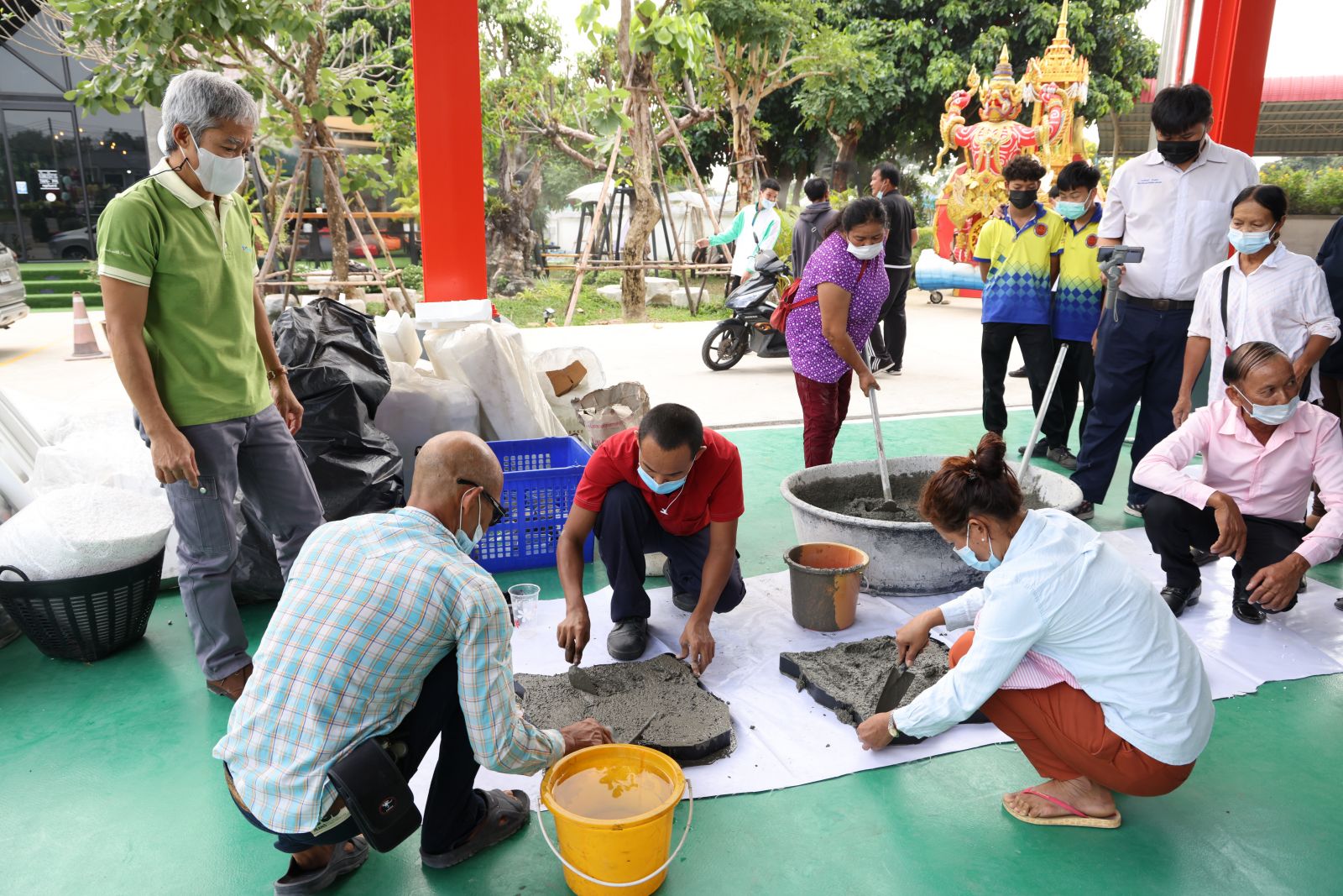 นายปานโชค เอื้อธนาภา กรรมการผู้จัดการ บ.จีซีสไตรีนิคส์ จำกัด กล่าวว่า บ.จีซีสไตรีนิคส์ เป็นบริษัทในกลุ่ม จีซี เป็นผู้ผลิตโฟม ซึ่งได้ให้ความสำคัญอย่างมากในการหาทางออกแก้ไขปัญหาขยะโฟม การทำบล็อกปูพื้นเป็นการนำขยะโฟมมาสร้างมูลค่าเพิ่ม โดยบล็อกปูพื้น 1 ก้อน ทำจากขยะโฟม 60 กล่อง ผสมกับปูนซีเมนต์ หิน และทราย จะได้บล็อกปูพื้นที่มีน้ำหนักเบาและมีความแข็งแรงเทียบเท่าบล็อกปูพื้นทั่วไป