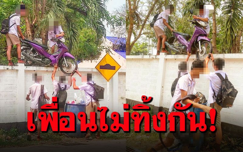 5 นักเรียนชายพยายามยกรถมอเตอร์'ไซค์ ข้ามกำแพง