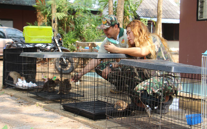 นายพจน์ ทับประทุม หัวหน้าศูนย์ช่วยเหลือสัตว์ป่าที่ 3 (ประทับช้าง) จ.ราชบุรี เปิดเผยว่า ที่ศูนย์ฯมีสัตว์ปีก สัตว์เลื้อยคลาน สัตว์เลี้ยงลูกด้วยนมทุกประเภท ประมาณ 70 ชนิด รวมจำนวน 400 ตัว เก้ง กวาง ละองค์ ละมั่ง เสือโคร่ง และสัตว์ป่าอื่น ๆ ที่นี่ยังมีรับลูกสัตว์ป่ารุ่นอนุบาล และจากสัตว์ป่าในคดีของกลางก็จะนำมาส่งไว้ให้ดูแล มีการรับแจ้งมาจากสายด่วน 1362 ทยอยเข้ามาประมาณกว่า 10 ชนิด ส่วนมากเป็นลูกแมวดาว ลูกเสือลายเมฆ ลูกเก้ง กวาง นก และเสือลายเมฆ ซึ่งอยู่ในช่วงเกิดปัญหาไฟป่าด้วย เนื่องจากผลกระทบจากไฟป่าจะส่งผลให้สัตว์เหล่านี้พลัดหลงจากพ่อแม่ ชาวบ้านที่พบเห็นจะนำมาส่งให้ช่วยเหลือเลี้ยงดูแลเป็นคลินิกของศูนย์ช่วยเหลือสัตว์ป่า เกี่ยวกับการดูแลสุขภาพของสัตว์ป่าให้มีสุขภาพแข็งแรง ก่อนที่จะนำไปปล่อยในกรงเลี้ยงหรือพื้นที่ป่าธรรมชาติ ถ้าหากสามารถช่วยเหลือตัวเองได้