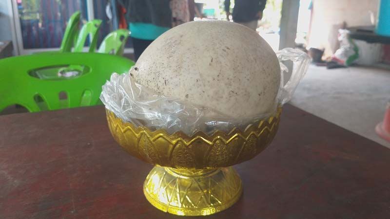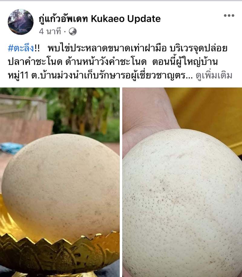 ฮือฮาไข่ประหลาดใหญ่กว่าฝ่ามือโผล่คำชะโนด สงสัยไข่พญานาค บุกพิสูจน์ที่แท้เป็นไข่นกกระจอกเทศ นทท.นำมาถวายปู่ศรีสุทโธ