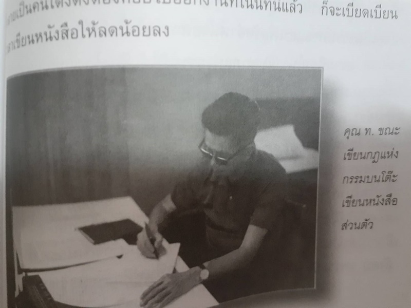 "ตอนตรวจต้นฉบับให้ท่าน ท่านก็บอกว่า อันนี้ตัดไม่ได้ สำคัญ ตอนหลังท่านก็นำไปทำเองทั้งหมด ช่วงที่ช่วยท่านก็ได้อ่านเรื่องของท่านตั้งแต่แรกๆ ตั้งแต่คุณพ่อเริ่มเขียนหนังสือกฎแห่งกรรมเรื่องแรก ตอนนี้ก็เก็บผลงานท่านไว้เยอะมากคะ บางส่วนมีการนำไปพิมพ์แจกงานศพ ตอนนี้ดิฉันก็กำลังคิดว่า จะเอาหนังสือไปบริจาคให้โรงเรียนต่างๆ และก็ยังกำลังหาที่อยู่คะ เพราะว่ามันเยอะมากเลย” คุณกรรณิการ์เล่าให้ฟังอย่างเป็นกันเอง