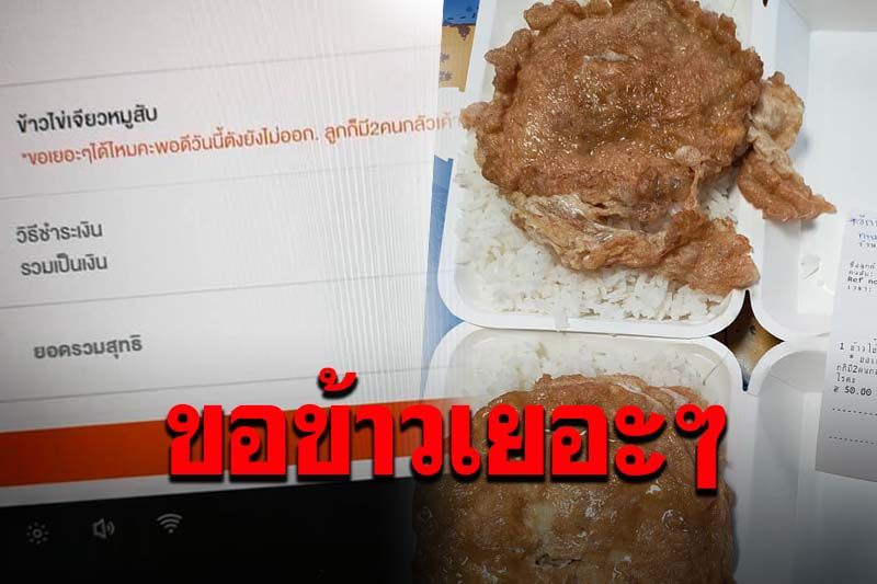 ทางร้านเห็นข้อความแบบนี้ มีหรือจะไม่ได้ เพราะเข้าใจหัวอกซึ่งกันและกัน ทางร้านจึงทำข้าวไข่เจียวเพิ่มให้อีกกล่อง พร้อมกลับเขียนข้อความกลับไปที่ใบเสร็จว่า "อีกกล่อง ทางร้านฝากให้เด็กค่ะ ทานให้อิ่มนะคะ"