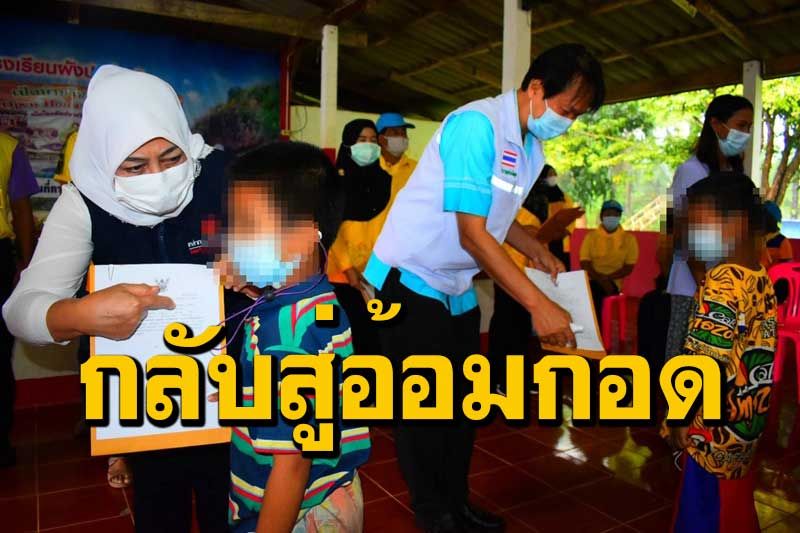 ที่โรงเรียนผังปาล์ม 3 หมู่ที่ 2 ตำบลปาล์มพัฒนา อำเภอมะนัง จังหวัดสตูล นาวาตรีหญิงโนสมา หลีเส็น นายกเหล่ากาชาดจังหวัดสตูล นายธีระยุทธ นาวีเดล นายอำเภอมะนัง นายแพทย์สาธารณสุขจังหวัดสตูล ผู้อำนวยการโรงเรียนผังปาล์ม 3 และส่วนราชการพื้นที่ ร่วมส่งน้อง ๆ นักเรียนและครู ที่สัมผัสเสี่ยงสูง พักสังเกตอาการครบ 14 วัน รวมนักเรียนทั้งสิ้น 27 คน และครูอีก 7 คน สู่อ้อมกอดของครอบครัวอย่างอบอุ่น