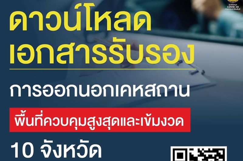 ล่าสุด เพจเฟซบุ๊กศูนย์โควิด ได้โพสต์ภาพพร้อมข้อความ ไฟล์เอกสารรับรองความจำเป็นสำหรับการออกนอกเคหสถานในระหว่างเวลา 21.00 - 04.00 น. (ไฟล์นี้เป็นตัวอย่างสำหรับหน่วยงานไปประยุกต์ใช้) ในพื้นที่กรุงเทพมหานคร และจังหวัดปริมณฑล (นครปฐม นนทบุรี ปทุมธานี สมุทรปราการ และสมุทรสาคร) และจังหวัดชายแดนภาคใต้ (นราธิวาส ปัตตานี ยะลา และสงขลา)