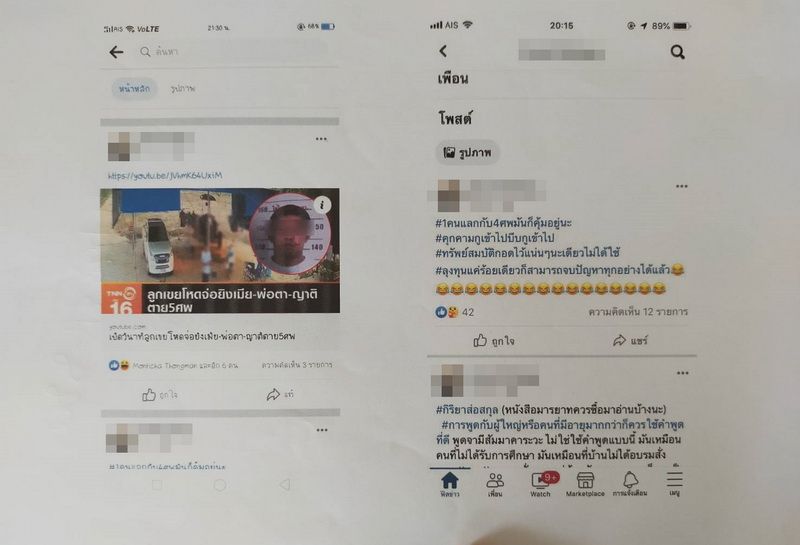 น.ส.เอ บอกกับผู้สื่อข่าวอีกว่า จดทะเบียนสมรสถูกต้องตามกฎหมายมีลูกด้วยกัน 2 คน ที่ผ่านมาเคยมีเรื่องชู้สาว ตนเองก็ให้อภัยมาตลอด เคยเห็นเขาไปกินก๋วยเตี๋ยวกับสาวคนนี้ซึ่งเป็นเซลล์ขายรถยนต์ แต่ก็อดเอาไว้ แต่ตอนนี้ตนเองทนไม่ไหวจริงๆ จึงขอไปให้เห็นต่อหน้าต่อหน้า หลังจากตนไปพบเขาที่บ้านสาวอื่น เขาก็โพสต์ในเฟสบุ๊ก บอกว่า จะฆ่าล้างครัว บอกว่า 1 ชีวิตแลกกับ 4 ชีวิตก็คุ้มนะ คุกคาม..เข้าไปบีบ..เข้าไป ทรัพย์สมบัติกอดไว้แน่นๆ นะ ลงทุนร้อยเดียวก็สามารถจบปัญหาทุกอย่างได้แล้ว พร้อมกับโพสต์ข่าว ลูกเขยโหดฆ่าเมีย พ่อตาและญาติรวม 5 ศพ ยิ่งทำให้ตนเองหวาดกลัวแต่ได้ไปแจ้งความที่ สภ.กุมภวาปีไว้แล้ว และผ่านมาอีก 1 วันสามีคนนี้พร้อมเพื่อนทหารก็บุกไปที่บ้านตนเอง ขอเคลียร์เรื่องที่เกิดขึ้นแต่วันนั้นตนเองไม่อยู่บ้าน ทำให้ทะเลาะกับแม่และพี่สาว จากนั้นเขาก็ข่มขู่ครอบครัวพวกเราเรื่อยมา