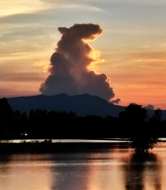 วันที่ 1 ต.ค.64 ผู้สื่อข่าวรายงานว่า ในโลกโซเชียล จ.สุโขทัย ได้มีการเผยแพร่ภาพ "อาทิตย์อัสดงที่กงไกรลาศ ก็อตซิลล่าโผล่เหนือยอดเขาหลวงสุโขทัย" เป็นปรากฏการณ์กลุ่มก้อนเมฆจับตัวเหนือท้องฟ้าที่สวยงาม แปลกตา ขณะพระอาทิตย์กำลังตกดิน ในช่วงเย็นวันที่ 30 ก.ย.ที่ผ่านมา สร้างความฮือฮาแก่ผู้พบเห็นอย่างมากและอดไม่ได้ที่จะคว้าโทรศัพท์สมาร์ทโฟนออกมาถ่ายภาพเก็บไว้ ก่อนแชร์ให้เพื่อนๆ ในโลกโซเชียลได้เห็นด้วย ซึ่งก็ต่างพากันแสดงความคิดเห็นไปต่างๆ นานา