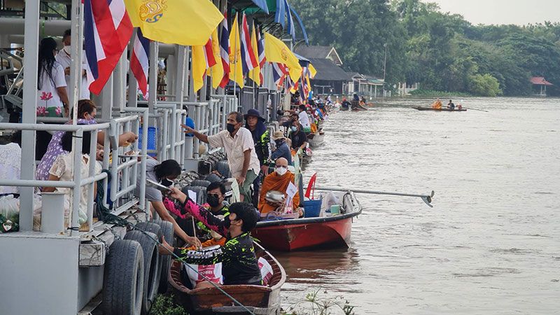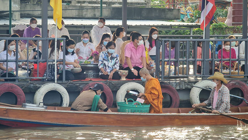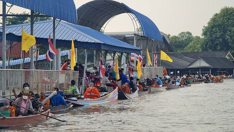 22 ตุลาคม 2564 เมื่อเวลา 07.30 น. นาย ดรณ์ สมิตะเกษตริน ปลัดจังหวัดปทุมธานี นายสายัณ นพขำ นายกเทศบาลตำบลบ้านกลาง นายพิษณุ ประภาธนานันท์ นายอำเภอเมืองปทุมธานี พร้อมข้าราชการพ่อค้า ประชาชนจำนวนมาก ร่วมประเพณีทำบุญตักบาตรพระร้อยทางเรือ อนุรักษ์ประเพณีดั้งเดิมในเทศกาลวันออกพรรษา ที่วัดมะขาม ต.บ้านกลาง อ.เมือง จ.ปทุมธานี ซึ่งเป็นวัดที่เป็นแหล่งท่องเที่ยว และติดกับวัดศาลเจ้าที่มีตลาดน้ำสำคัญของจังหวัดปทุมธานี