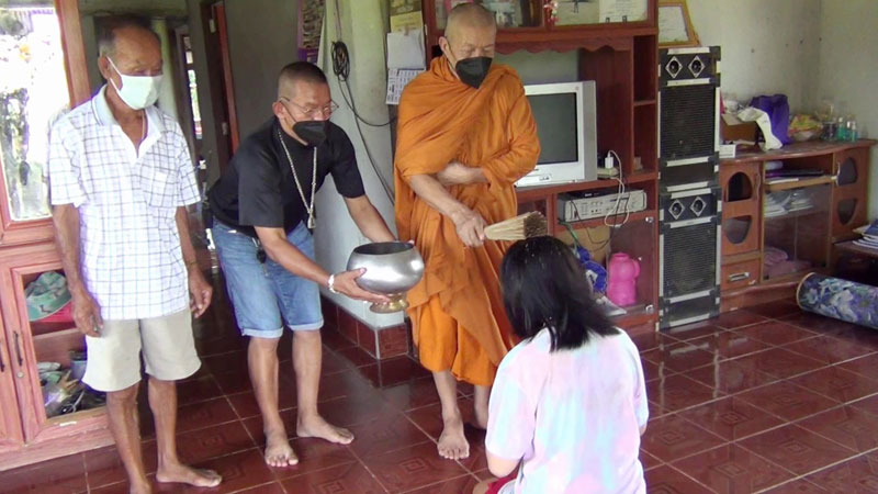 ล่าสุด นางยุพิน ปิ่นทอง พร้อม นายอนุชา มั่นหา สามี ได้นิมนต์พระครูอุเทศ ธรรมวิจิตร หรือ หลวงหรั่ง เจ้าอาวาสวัดทุ่งนางาม เจ้าคณะตำบลทุ่งนางาม มาทำพิธีรดน้ำมนต์ให้กับน้องเพลง ในระหว่างที่ประกอบพิธีหยดเทียนน้ำมนต์ลงในขัน ทราบว่าเป็นวิญญาณของปู่ ตา ย่า ที่เคยมาอาศัยอยู่ที่บ้านหลังเก่า แต่ได้ตามมาขออาศัยอยู่ที่บ้าน จึงแนะให้นางยุพิน และครอบครัว ไปบุญอุทิศส่วนกุศลให้กับปู่ ย่า ตายาย ดังกล่าว