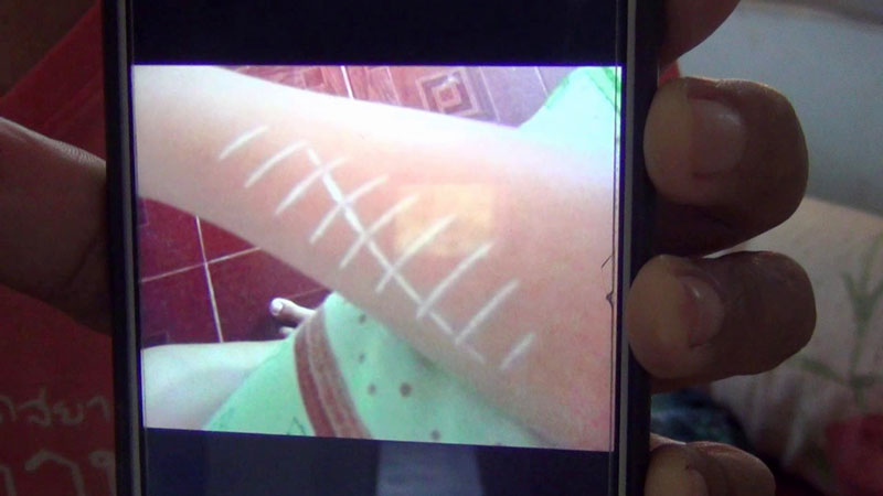 หลังจากนั้น จึงได้เข้าไปที่เฟซบุ๊กของ หมอปลา และได้ส่งรูปภาพให้ดู หมอปลาได้ทักกลับมา บอกว่าไปโดนอะไรขีดมาที่แขนหรือเปล่า ตนเองก็ตอบกลับไปว่าน้องนอนกับแม่ตลอด โดยตนเองก็ได้เล่าเหตุการณ์ให้หมอปลาฟังว่าที่บ้านอยู่ด้วยกัน 3 คน โดยไม่มีเด็ก