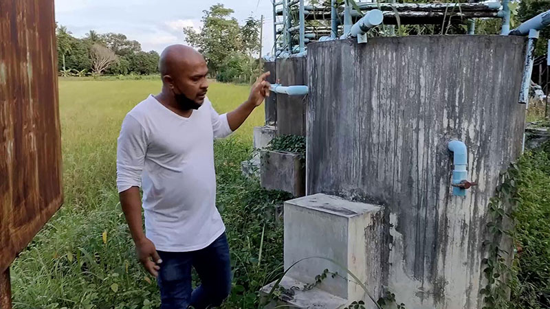 ขณะที่หมอปลาพร้อมทีมงานได้เดินไปที่เครื่องกรองน้ำเก็บประปาของหมู่บ้าน ที่อยู่ห่างจากบ้านประมาณ 10 -15 เมตร โดยสร้างมาตั้งแต่พ.ศ 2550 แต่ครั้งนี้ไม่ได้ใช้งานมาเกือบ 10 ปี ขณะนั้นหมอปลาก็ได้มีอาการคล้ายคนจะอาเจียนคลื่นไส้หรือคนทำท่าจะอ๊วก แล้วก็เดินหนีออกมาจากจุดเครื่องกรองน้ำแท่งประปาของหมู่บ้าน โดยพูดเกี่ยวกับที่กรองน้ำของหมู่บ้านที่มีถ่านหุงข้าวอยู่ใต้เครื่องกรองน้ำ ที่เอาไว้ใช้ดับกลิ่นหรือทำให้ใสมาเป็นเวลานาน