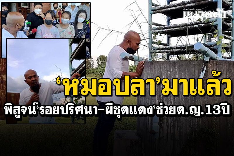 ทั้งนี้ได้สอบถามไปยังน้องเพลง เล่าอีกว่า ก่อนหน้านี้ตนเองพร้อมคณะครูได้เดินทางไปสถานที่บำบัดของคนติดยาที่จังหวัดกาญจนบุรี หลังจากเสร็จงานแล้วคุณครูพร้อมคณะก็ได้มาส่งตนเองที่บ้านตนเอง แล้วก็เกิดเหตุการณ์ขึ้น ทั้งคุณครูและตนเองได้เห็นผู้หญิงสวมชุดแดงชะโงกหน้าออกมาจากประตูในบ้านของตนเอง ตอนแรกคิดว่าเป็นคุณแม่ของตนเองแต่ไม่ใช่ เนื่องจากคุณแม่ของตนเองพึ่งเปิดประตูบ้านออกมา แล้วผู้หญิงสวมชุดแดงก็หายไป ซึ่งสร้างความแปลกใจให้ตนเองและครอบมาโดยตลอด และก็เกิดเหตุการณ์แปลกๆเกิดขึ้นอยู่หลายครั้ง ล่าสุดก็ได้ติดต่อไปทางหมอปลาให้ลงมาดู พร้อมกับบอกกับนักข่าวว่าหมอปลาลงมาแล้วรู้สึกสบายใจขึ้น แล้วหน้าอกจากที่เคยเจ็บก็เบาลง