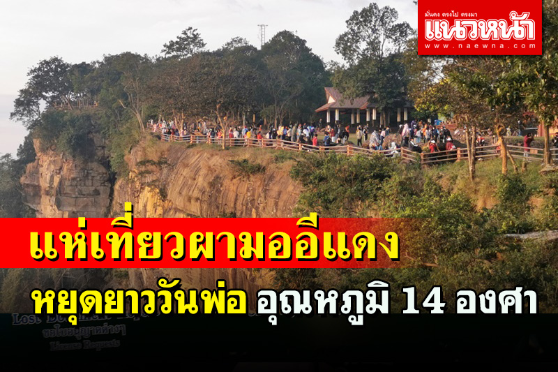 หยุดยาววันพ่อแห่งชาตินักท่องเที่ยวแห่ขึ้นสัมผัสอากาศหนาวบนผามออีแดงอุณหภูมิ 14 องศาเซลเซียส คึกคัก โดยเที่ยวแบบนิวนอร์มอล