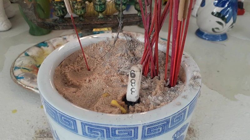 จากนั้นจากพิธีเลี้ยงบ้าน หรือเซ่นไหว้ปู่ตาเสร็จสิ้น ชาวบ้านที่ออกมาร่วมพิธีต่างแห่เข้ามาดูธูปในกระถางพิธี โดยปีนี้ได้มีการนําธูปเสี่ยงทายมาจุดถวายด้วยทุกสายตาต่างลุ้นตัวเลขที่ธูปเริ่มปรากฏตัวเลขเด่นชัด 3 ตัว คือตัวเลข 688 และตัวเลขในธูปเสี่ยงทายในพิธีเลี้ยงปู่ตาในครั้งนี้ ชาวบ้านต่างวิพากษ์วิจารณ์กันว่า นี่คือโชคลาภที่ปู่ตาประจําหมู่บ้านท่านให้ ก่อนชาวบ้านจะใช้โทรศัพท์ถ่ายรูปไว้เพื่อจะนําตัวเลข 688 ไปเสี่ยงโชค ในงวด 16 ก.พ.65 ที่จะถึงนี้ - 003