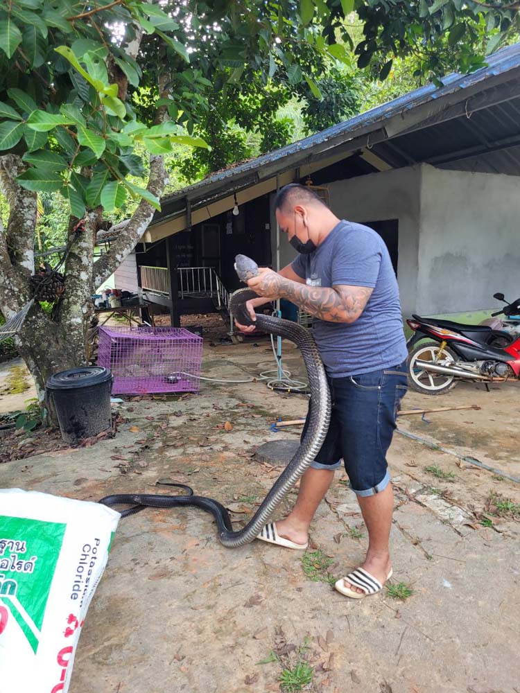 20 ก.พ.65 เจ้าหน้าที่หน่วยกู้ภัยมูลนิธิกระบี่พิทักษ์ประชาลำทับ จ.กระบี่ เข้าจับงูจงอาง หรือ งูบองหลา ขนาดใหญ่ ยาว 4.5 เมตร หนักกว่า 20 กิโลกรัม ขณะเลื้อยเข้าบ้านเลขที่199 ม.9 ต.ลำทับ อ.ลำทับ จ.กระบี่ โดยงูตัวดังกล่าว พยายามดิ้นสู้และขู่ตลอดเวลาเจ้าหน้าที่ใช้เวลานานกว่า 20 นาที ก็สามารถจับได้สำเร็จ จากนั้นนำใส่กระสอบไปปล่อยคืนสู่ธรรมชาติต่อไป ท่ามกลางความตกตะลึงและลุ้นระทึกของชาวบ้านที่มามุงดู เนื่องจากเป็นงูที่มีขนาดใหญ่ บางคนก็เชื่อว่าเป็นงูเจ้าที่