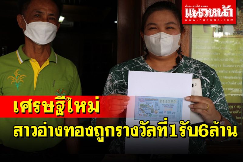 ขอแสดงความยินดีกับเศรษฐีใหม่อ่างทอง หญิงสาววัย 40 ปี เจ้าหน้าที่บริหารทั่วไปโรงเรียนอ่างทองปัทมโรจน์วิทยาคม ถูกรางวัลที่ 1 รับเงิน 6 ล้านบาท เผยพี่สาวที่อยู่ชลบุรีให้เลข 905 มาไปซื้อสลากฯ