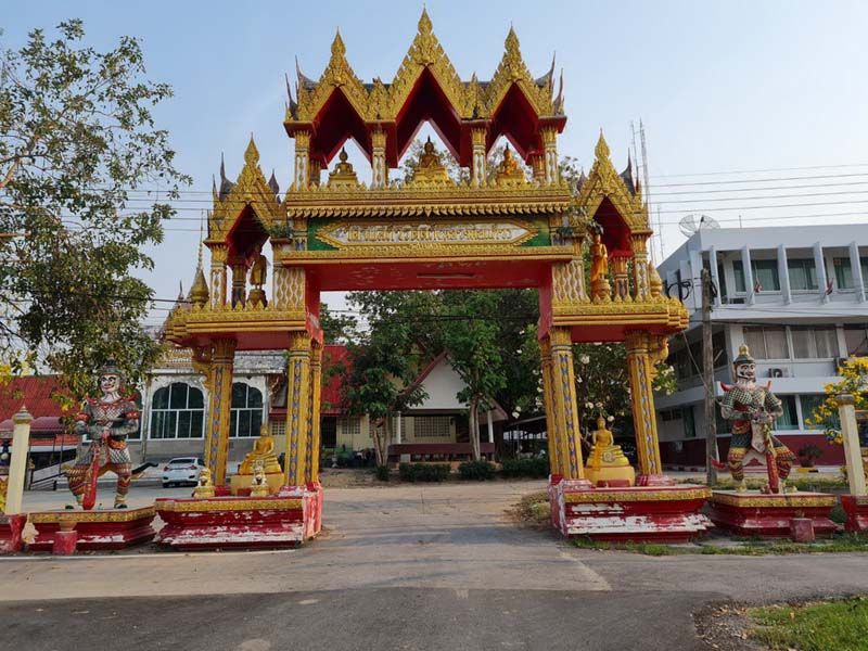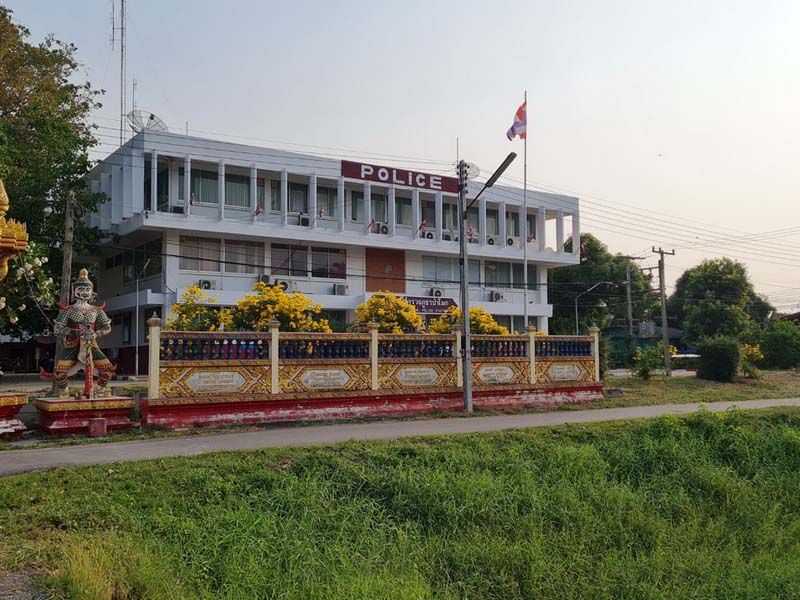 อ่างทอง แปลกตาโรงพักตั้งอยู่ในวัด โดยมีรั้วของวัดล้อมรอบ และบริเวณ ซุ้มประตู มีท้าวเวสสุวรรณ ตั้งตระหง่านอยู่ซ้ายขวา ของซุ้มประตูวัด ซึ่งเป็นภาพแปลกตา