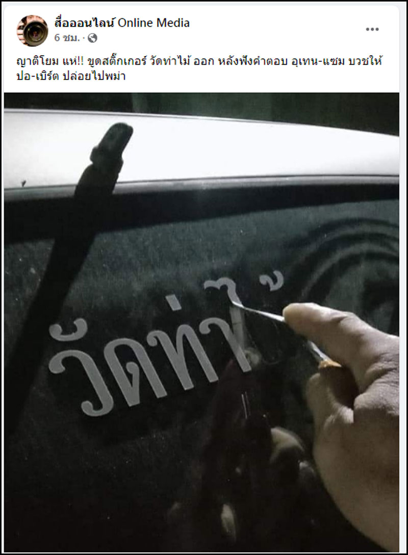 17 มี.ค.65 โลกโซเชียลแห่แชร์คลิปขณะขูดสติ๊กเกอร์ 'วัดท่าไม้' ที่เชื่อว่าหลายคนเคยเห็นจนชินตากับสติ๊กเกอร์ตัวหนังสือสีขาวว่าข้อความว่า 'วัดท่าไม้' ติดคล้ายรถกันให้เกลื่อนถนน ซึ่งหลายคนเป็นลูกศิษย์วัด ที่ตั้งอยู่ จ.สมุทรสาคร