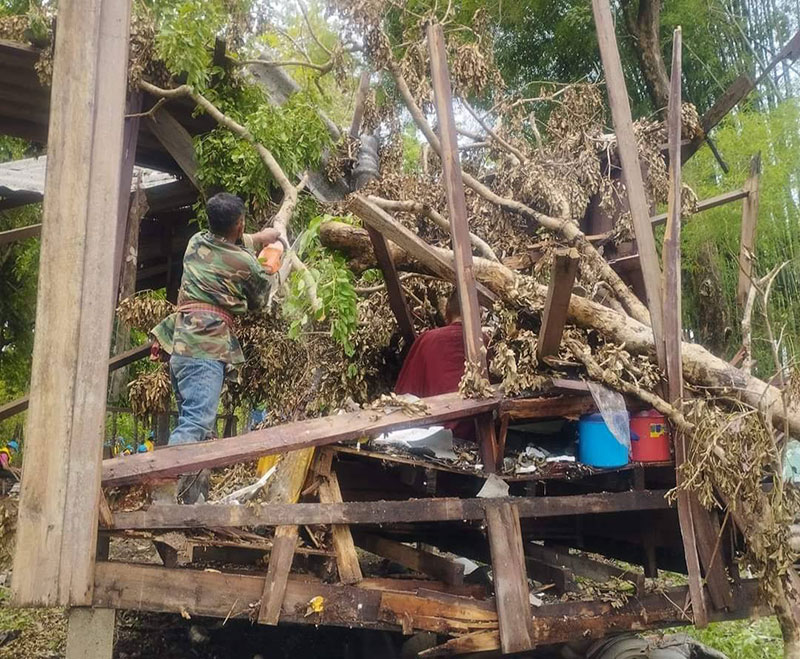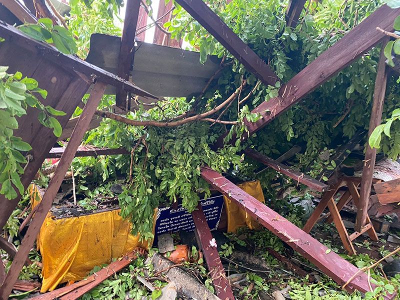 ภายในวัดได้รับความเสียหายจาก ต้นไม้หักโค่นรวมทั้งสิ่งปลูกสร้างและพระพุทธรูปแต่ที่น่าอัศจรรย์ รูปปั้นหุ่นขี้ผึ้งครูบาเจ้าศรีวิชัยที่ประดิษฐานภายใน ศาลาถูกต้นไม้หักโค่นทับจนทำให้ได้รับความเสียหายแต่รูปปั้นครูบาศรีวิชัยไม่ได้รับความเสียหายแต่อย่างใด จึงทำให้ชาวบ้านและเจ้าหน้าที่ต่างพากันทึ่งเและเชื่อในความศักดิ์สิทธิ์และปาฏิหาริย์ของครูบาเจ้าศรีวิชัย ที่ไม่ได้รับความเสียหายใดๆ. 012