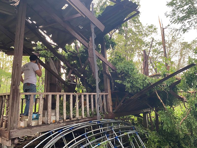 หลังจากเกิดพายุฤดูร้อน 2 วันติดต่อกันที่ผ่านมา ส่งผลให้พื้นทั่วไปในจังหวัดพะเยา และพื้นที่ตำบลบ้านต๊ำพระแล ได้รับความเสียหายจากพายุฤดูร้อน ทั้งบ้านเรือนประชาชนและสิ่งปลูกสร้างต่างๆ รวมทั้งวัดม่วงเจ็ดต้น ซึ่งอยู่ในพื้นที่หมู่ 11 ตำบลบ้านต๊ำ อำเภอเมือง จังหวัดพะเยา เป็นวัดร้างมาก่อน มีพระพุทธรูปและรูปปั้นหุ่นขี้ผึ้งครูบาศรีวิชัยประดิษฐานอยู่