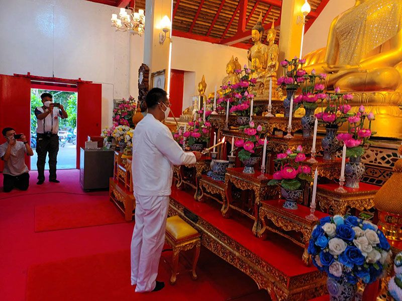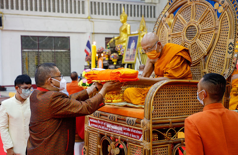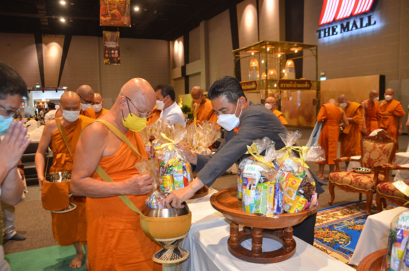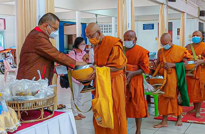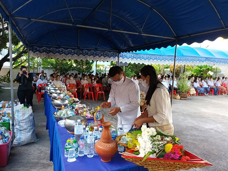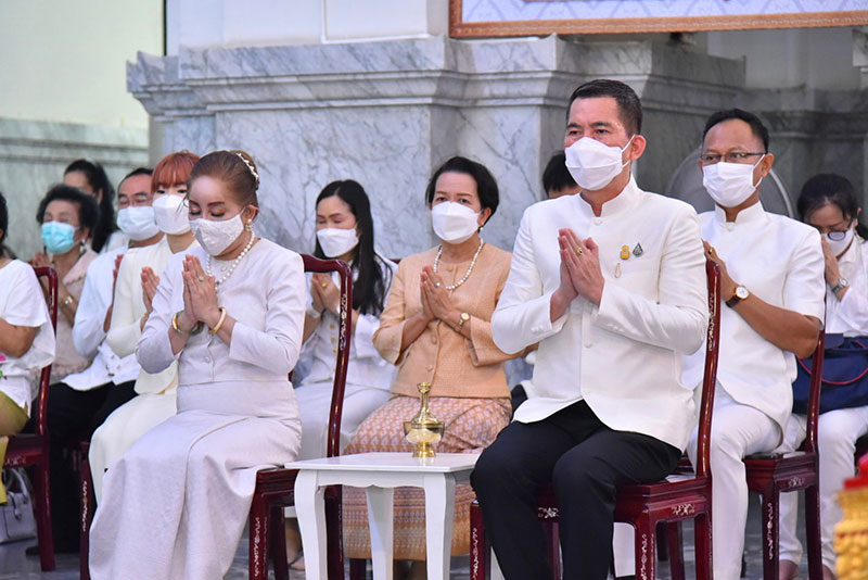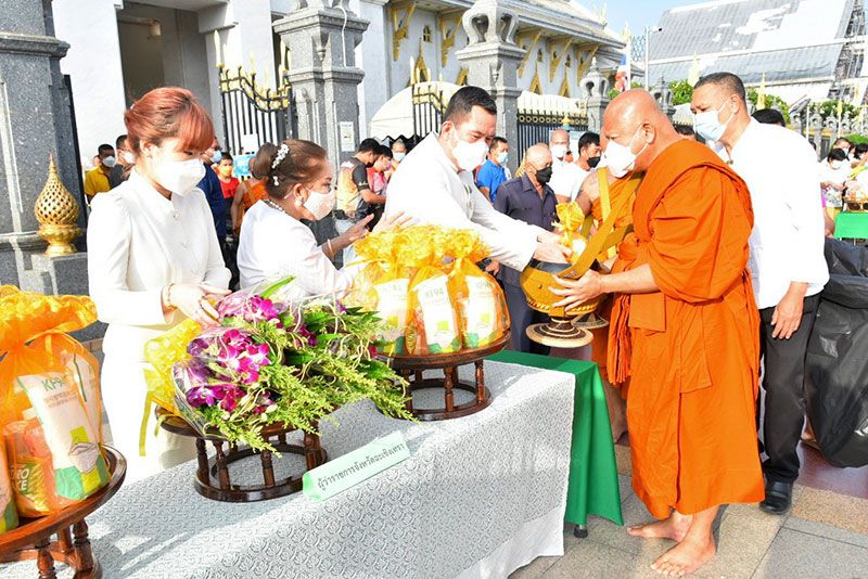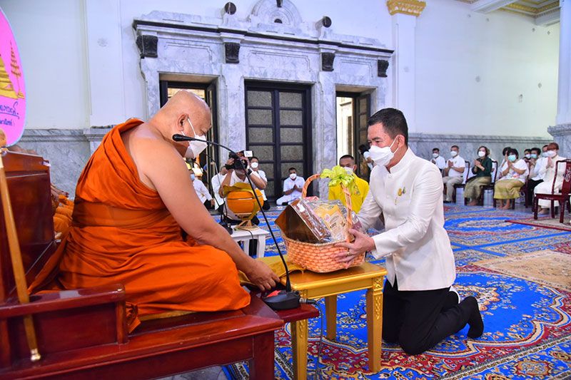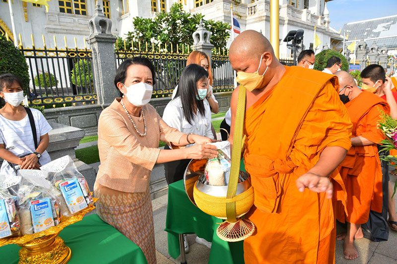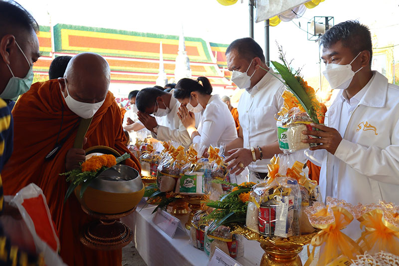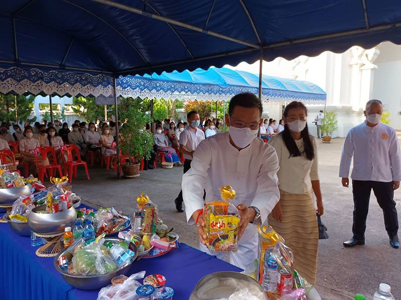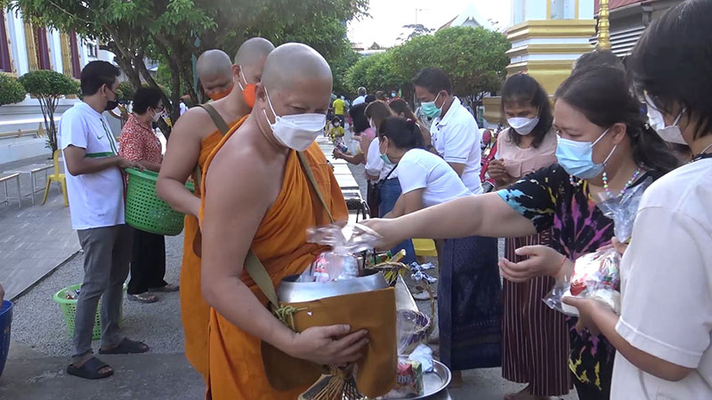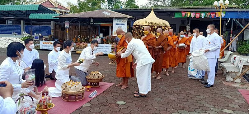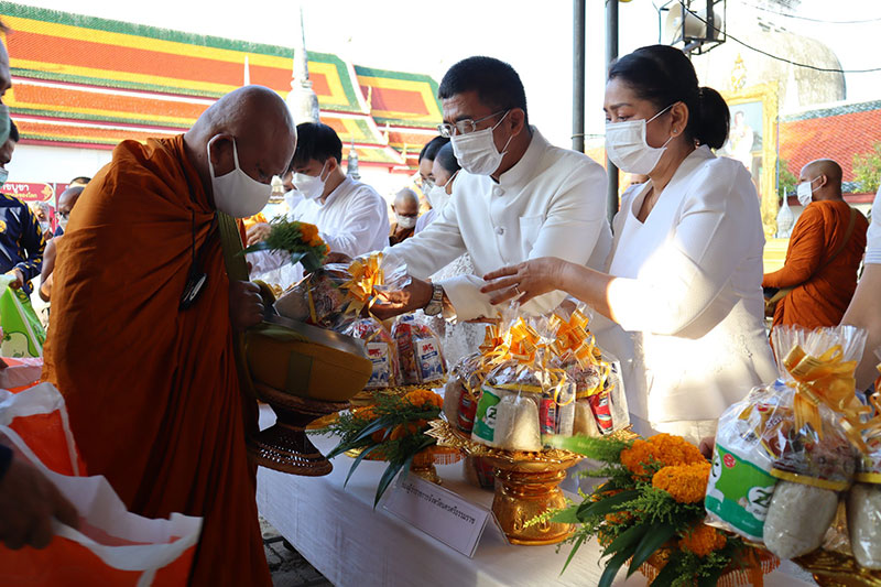 ร่วมรับศีลจาก พระราชภาวนาพิธาน วิ. เจ้าอาวาสวัดโสธรวรารามวรวิหาร และเจ้าคณะจังหวัดฉะเชิงเทรา และกล่าวคำถวายสังฆทาน ถวายไทยธรรม และรับพรจากพระสงฆ์ จากนั้นผู้ว่าราชการจังหวัดฯ นำข้าราชการ และพุทธศาสนิกชน ร่วมทำบุญตักบาตรข้าวสารอาหารแห้งแด่พระภิกษุสงฆ์ สามเณร เพื่อถวายเป็นพุทธบูชาและเพื่อความเป็นสิริมงคลต่อตนเองและครอบครัว ภายใต้มาตรการ ป้องกันการแพร่ระบาดของโรคโควิด-19 อย่างเคร่งครัด