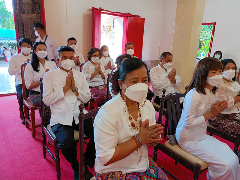 15 พฤษภาคม 2565 เวลา 07.00 น. นายเชษฐา โมสิกรัตน์ ผู้ว่าราชการจังหวัดแม่ฮ่องสอน พร้อมด้วยหัวหน้าส่วนราชการ พ่อค้า ประชาชนพร้อมใจกันนุ่งขาวห่มขาว ทำบุญ ตักบาตรข้าวสาร อาหารแห้งพระสงฆ์ สามเณร จำนวน 21 รูป เนื่องในวันวิสาขบูชา ประจำปี 2565 ที่ลานหน้าองค์พระเจดีย์ วัดพระธาตุดอยกองมู ต.จองคำ อ.เมือง จ.แม่ฮ่องสอน เพื่อถวายเป็นพุทธบูชาและสืบทอดพระพุทธศาสนาให้คงอยู่สืบไป ท่ามกลางอากาศที่เย็นสบายในช่วงเช้าซึ่งปราศจากสายฝน ถึงแม้ก่อนหน้านี้จะมีฝนตกลงมาติดต่อกันหลายวัน