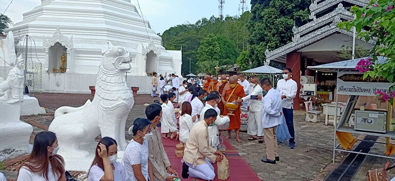 พุทธศาสนิกชนในจังหวัดสงขลา ทำบุญตักบาตรเนื่องในวันวิสาขบูชา ซึ่งเป็นวันสำคัญทางพระพุทธศาสนา และวันสำคัญสากลของโลก ประจำปี 2565