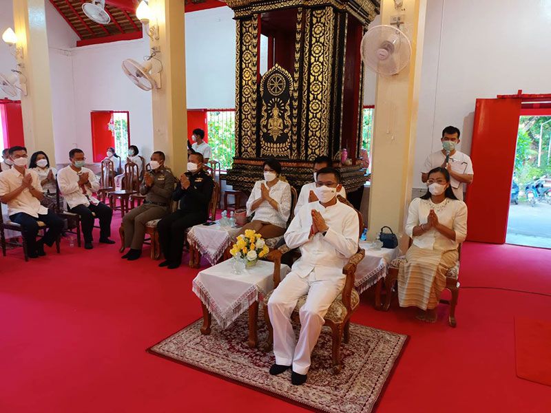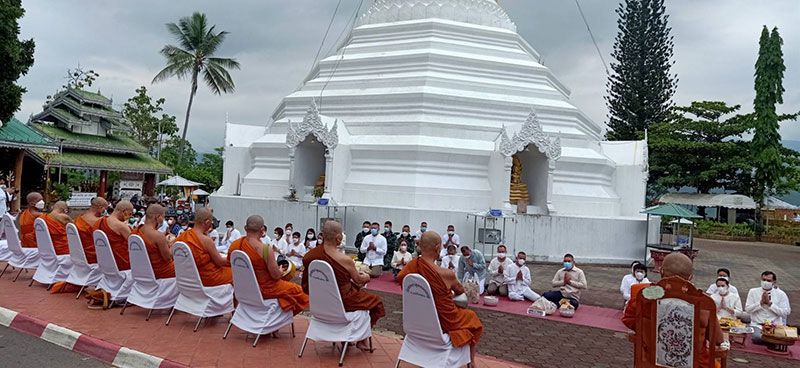 ผู้ว่าราชการจังหวัดแม่ฮ่องสอน พร้อมด้วยหัวหน้าส่วนราชการ พ่อค้า ประชาชนพร้อมใจกันนุ่งขาวห่มขาว ทำบุญ ตักบาตรข้าวสาร อาหารแห้งพระสงฆ์ สามเณร จำนวน 21 รูป เนื่องในวันวิสาขบูชา ประจำปี 2565