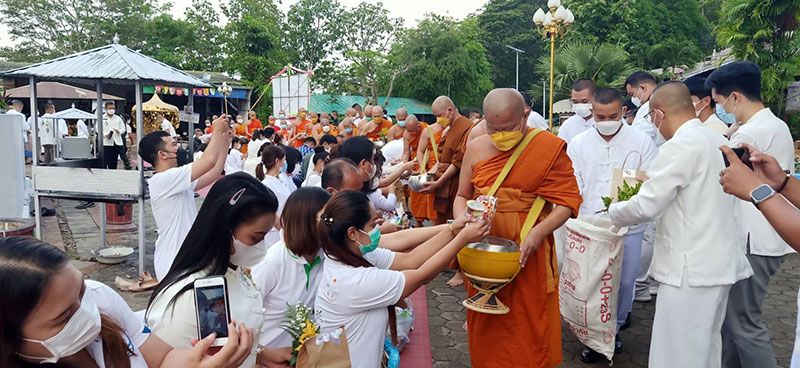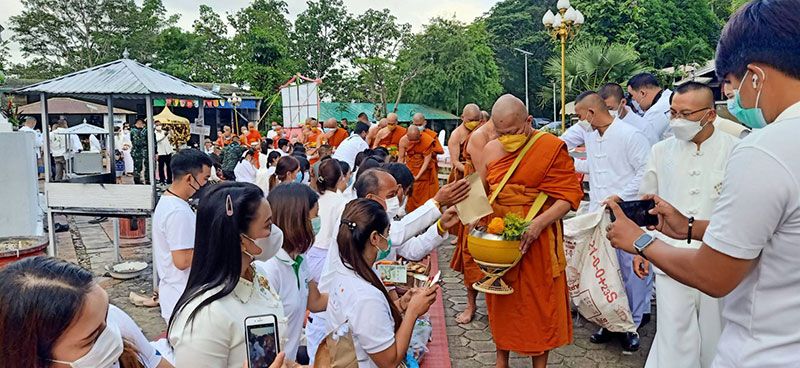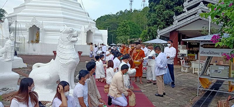ชาวพุทธเมืองคอน พร้อมใจนุ่งขาวห่มขาว ตักบาตรวันวิสาขบูชาวันสำคัญสากลของโลก