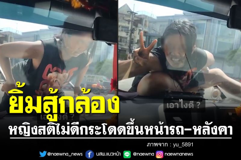 ยิ้มสู้กล้องซะด้วย! สาวกรี๊ดลั่น หญิงสติไม่ดีกระโดดขึ้นหน้ารถ-หลังคา คอหวยไม่พลาดส่องเลขทะเบียนรถเสี่ยงโชค งวดวันที่ 16 มิ.ย.65