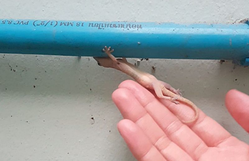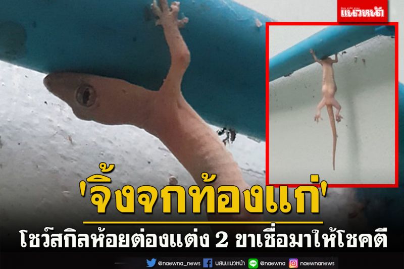 วันนี้ (8 ก.ค.65) ที่บ้านหลังหนึ่งใน ต.ไกรนอก อ.กงไกรลาศ จ.สุโขทัย ขณะเจ้าของบ้านเข้าทำธุระในห้องน้ำ ก็เผอิญเหลือบไปเห็นจิ้งจกสาวท้องแก่ กำลังห้อยต่องแต่งอยู่บนท่อพีวีซี โดยใช้ขาคู่หน้ายึดเกาะท่อไว้ไม่ให้ตัวหล่นลงมาในอ่างน้ำ และเมื่อสังเกตดูใกล้ๆก็พบว่าในท้องมีไข่อยู่ 2 ใบ จึงใช้โทรศัพท์มือถือถ่ายคลิปเก็บเอาไว้ พร้อมทำการช่วยเหลือจิ้งจกจนปลอดภัย จากนั้นได้เล่าให้เพื่อนบ้านฟัง เขาบอกว่าจิ้งจกมาให้โชค ความหมายจิ้งจกก็เท่ากับเลข 7 ไข่เท่ากับ 0 มี 2 ใบ และกำลังห้อย 2 ขา จึงพากันตีเป็นเลขเด็ด หวังลุ้นรวยงวดวันที่ 16 กรกฎาคม 2565 นี้ - 003