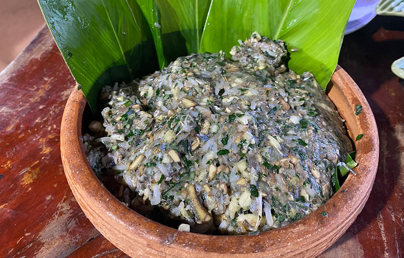 จึงนำมาแปรรูปด้วยการสับบดให้ละเอียดเพื่อทำส้มเขียด ที่สำคัญในการปรุงก่อนที่จะนำมาเป็นส้มเขียด จะมีส่วนผสมของสมุนไพรเพื่อสุขภาพ ประกอบด้วย กระเทียม หัวปลีสับ ใบชะพลูหรือภาษาถิ่นเรียกว่าผักอีเลิด ใบข่า และพริกสด รวมถึงส่วนผสมปรุงรสด้วยเกลือ และข้าวเหนียวนึ่ง เป็นสูตรถนอมอาหารทำส้มแหนมแบบพื้นบ้าน เพียงมีสมุนไพรเข้ามาเพิ่ม