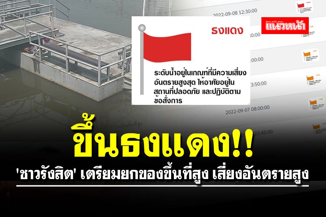 “ชาวรังสิต” เตรียมยกของขึ้นที่สูง! เทศบาลนครรังสิต ประกาศผ่านเว็บไซต์ ขึ้นธงสีแดง เตือนระดับน้ำมีเกณฑ์เสี่ยงอันตรายสูง