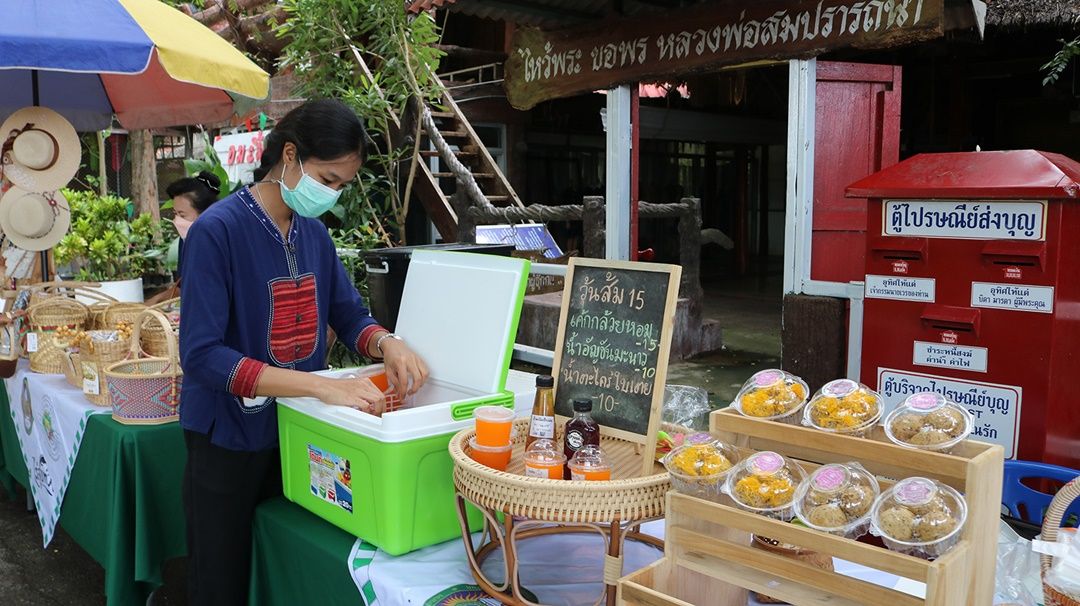 ช่วงวันหยุดเสาร์ และอาทิตย์ นักท่องเที่ยวสามารถเดินทางมาเที่ยวที่ตลาดอมยิ้ม ภายในวัดวาปีสุทธาวาส ได้โดยเริ่มตั้งแต่ช่วงเช้าไปจนถึงช่วงเย็น มีอาหารของกินของใช้ ผลิตภัณฑ์แปรรูปให้เลือกมากมาย แถมราคาไม่แพง ชาวบ้านนำมาวางขายเอง บริเวณด้านในวัดยังมีสระน้ำขนาดใหญ่ให้เด็กๆ ได้เพลิดเพลินไปกับการเลี้ยงอาหารปลา ทำบุญ ไหว้พระกับสิ่งศักดิ์สิทธิ์ที่อยู่ด้านในวัด เพื่อความเป็นสิริมงคลในช่วงวันหยุดพักผ่อนกันได้ - 003
