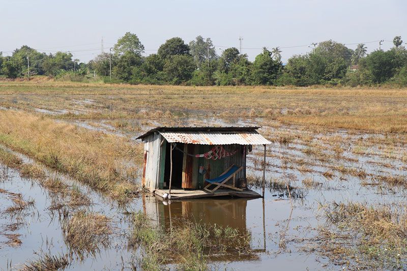 12 ธันวาคม 2565 ที่บริเวณกลางทุ่งนาหมู่ 9 ตำบลหัวไผ่ อำเภอเมือง จังหวัดอ่างทอง พบบ้านจำนวน 3 คน ได้นำเรือเหล็กออกเก็บเกี่ยวข้าวในนา ที่ถูกน้ำท่วมสูงประมาณ 1 เมตร ใส่ในเรือขนมาตากแดดไว้ที่ริมถนน ก่อนที่จะใช้รถย้ำข้าวแยกฝางและเมล็ดข้าวออกจากกัน พร้อมทำการตาแดดไว้ริมถนนแล้วฝัดข้าวแยกเมล็ดดีและเมล็ดที่ลีบออกจากกัน ก่อนนำใส่กระสอบปุ๋ยกลับไปเก็บไว้ที่บ้านเพื่อนำไปเป็นอาหารสัตว์เลี้ยง เพื่อลดต้น