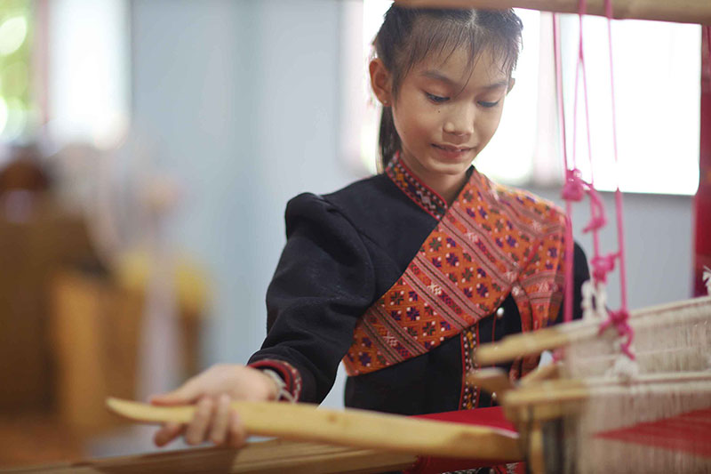 โรงเรียนชุมชนโพนพิทยา อำเภอคำม่วง จังหวัดกาฬสินธุ์ จัดการเรียนการสอนหลักสูตรสาระท้องถิ่น การทอผ้าไหมแพรวา ส่งต่อภูมิปัญญาการทอผ้าพื้นเมืองให้กับเยาวชนร่วมสืบสาน พร้อมเปิดช่องทางการจำหน่ายริวิวขายทางออนไลน์ สร้างรายได้ระหว่างเรียนและเป็นทุนการศึกษาในอนาคต