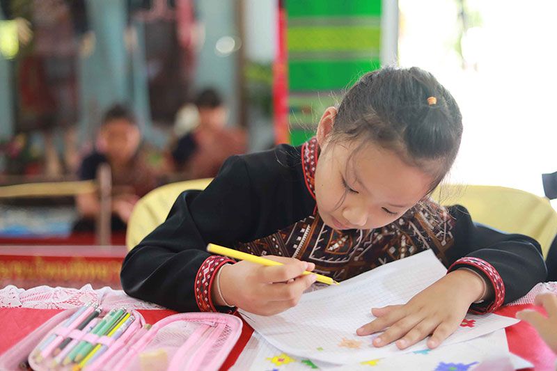 ขณะที่ ด.ญ.จารุพิชญา เกลี้ยงรส นักเรียนชั้น ป.3 กล่าวว่า รู้สึกภูมิใจมาก ที่เป็นส่วนหนึ่งในการอนุรักษ์และสืบสานการทอผ้าไหมแพรวา โดยจะนำไปประกอบอาชีพในอนาคต ปัจจุบันตนสามารถทอผ้าไหมแพรวาได้หลายลาย เช่น ลายดอกดาว ลายดอกตาบ้ง ลายช่อนาค และลายดอกพันมหา.012