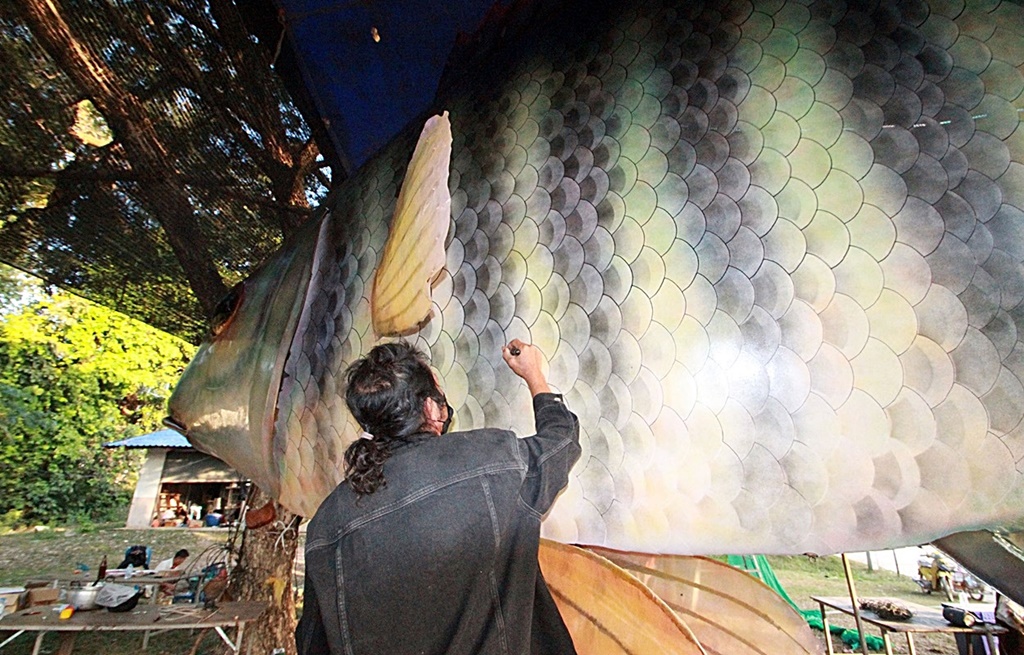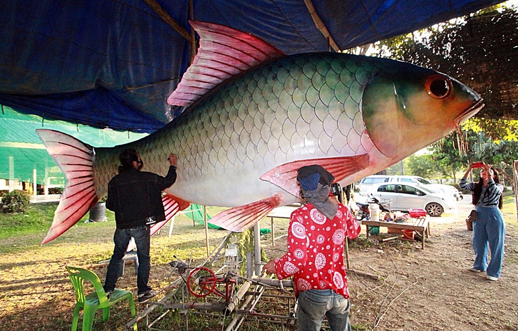 นายนิพล วงค์พุทธา อายุ 59 ปี ผู้ใหญ่บ้าน หมู่ 6 บ้านโพนก่อ ต.นาคำ อ.ศรีสงคราม จ.นครพนม เปิดเผยว่า ทุกปีชาวบ้านศิลปินหุ่นปลาในพื้นที่ ต่างพากันร่วมแรงร่วมใจกันสรรค์สร้างประดิษฐ์หุ่นปลายักษ์ เพื่อร่วมขบวนในงานประเพณีสำคัญ มีทั้งแห่หุ่นปลา และการแสดงศิลปวัฒนธรรมประเพณีท้องถิ่นมากถึง 10 ขบวน เพื่อเป็นการส่งเสริมการท่องเที่ยว รวมถึงสร้างจิตสำนึกให้ประชาชน อนุรักษ์หวงแหนในแหล่งน้ำธรรมชาติ ทั้งน้ำโขง ลุ่มน้ำสงคราม และอาชีพประมง ให้ชาวบ้านเน้นการจับปลาที่เป็นไปตามกฎหมาย เพราะปัจจุบันเทคโนโลยีต่างๆ ทันสมัย ทำให้ชาวประมงบางรายเกิดความมักง่าย ฝ่าฝืนกฎหมาย กฎระเบียบชุมชน ใช้วิธีการจับปลาที่เสี่ยงต่อการสูญพันธุ์ ทำให้ปลาลุ่มน้ำสงคราม ปลาน้ำโขงหลายชนิดใกล้สูญพันธุ์