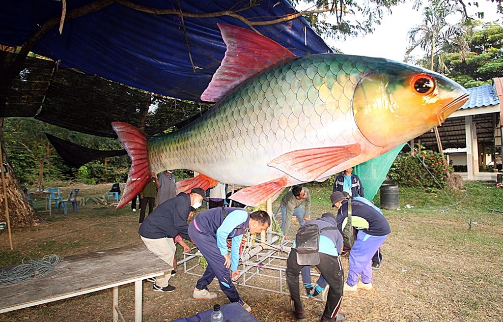 ทั้งนี้ งานมหกรรมลุ่มน้ำสงคราม ได้จัดต่อเนื่องมานานกว่า 20 ปี ทุกปี ชาวบ้านศิลปินหุ่นปลายักษ์ จะร่วมสรรค์สร้างหุ่นปลาไปร่วมงาน เริ่มจากในอดีตเป็นหุ่นปลาธรรมดา ที่ประดิษฐ์ขึ้นตามแบบภูมิปัญญาชาวบ้าน จนมีการพัฒนาให้เกิดความสวยงามสมจริงทุกอย่าง ถอดแบบจากกปลาตัวจริง ที่สำคัญปัจจุบันถือเป็นอันซีน (unseen) ปลาที่ประดิษฐ์ขึ้นมาสามารถเคลื่อนไหวได้ทุกสัดส่วน และดูเหมือนการแหวกว่าในน้ำ โดยทุกตำบลมีการออกแบบปลาสายพันธุ์ต่างๆ ไปร่วมประกวด และอวดสายตาประชาชน นักท่องเที่ยวให้ได้ชื่นชม อาทิปลาทั้ง 2 ตัวที่สร้างขึ้นที่ชุมชนตนสร้างขึ้น เป็นปลายี่สกขนาดใหญ่ ความยาวนับ 10 เมตร สูงกว่า 4 -5 เมตร เกล็ดปลาทำจากกระดาษแข็ง ก่อนที่จะมีการลงสี ลงลวดลาย สีสัน ให้มีความสวยงามสมจริงมากที่สุด อีกตัวเป็นปลาหมอยักษ์ช้างเหยียบ โดยมีการนำวัสดุอุปกรณ์มอเตอร์ที่ไม่ใช้งาน มาประดิษฐ์เป็นเครื่องจักรไฟฟ้าขนาดเล็กขับเคลื่อนทุกส่วนของตัวปลา จากภูมิปัญญาชาวบ้านล้วนๆ นำมาสู่หุ่นปลายักษ์ที่มี่ความสวยงาม