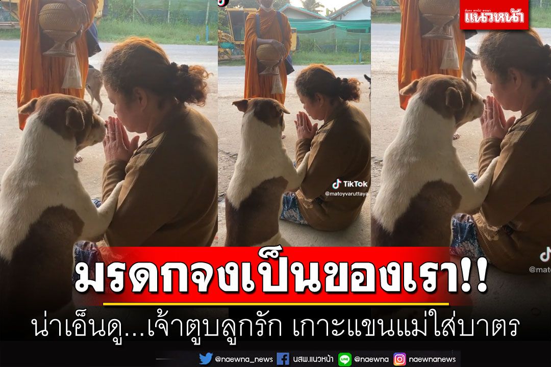 ไปดู 'เจ้าหรั่ง' หมาใส่บาตร เกาะแขนแม่รับพร รู้จักประสาขนาดนี้ รู้แล้ว..มรดกจะตกเป็นของใคร